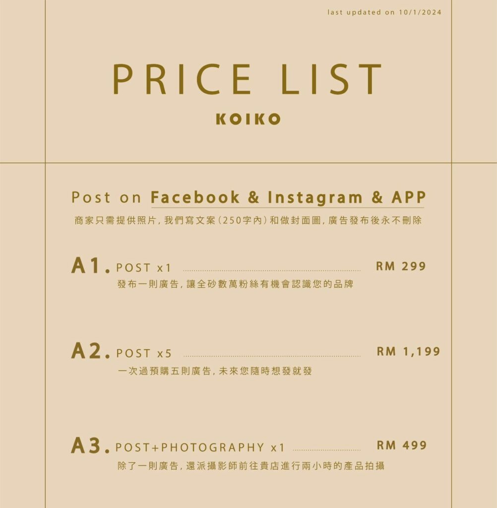 收费表 Rate Card